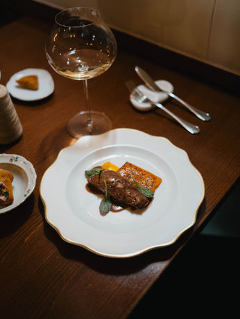 Proponiamo un menu stagionale creativo, accompagnato da una cantina a vista con etichette artigianali e selezioni di nicchia, pensate per esaltare ogni piatto con degustazioni cibo-vino curate nei minimi dettagli.